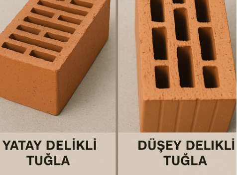 Yatay delikli tuğla ile düşey delikli tuğla arasındaki temel fark, deliklerin yönüdür.